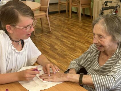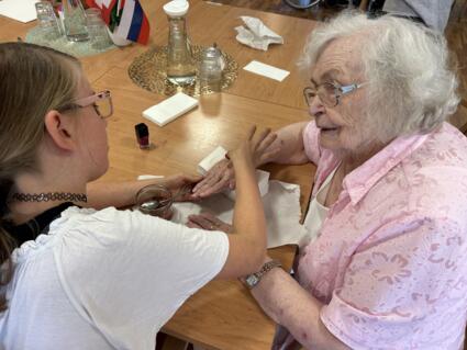 The children gave the senior citizens a particularly wonderful experience. They organized a wellness afternoon, during which the senior citizens received a hand massage and had their nails painted. Both children and senior citizens had a lot of fun.