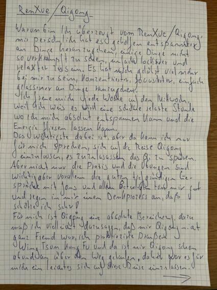 In cooperation with a correctional institution (JVA) a weekly Qi Gong training is offered for inmates.